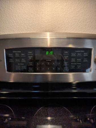 GE Profile free standing 30 inch electric range. 5 burner radiant cooktop with dual ovens. Lower oven is a convection oven. Excellent condition, like new. Model number is PB9755P5SS. Local pickup...