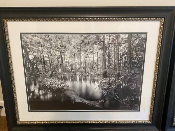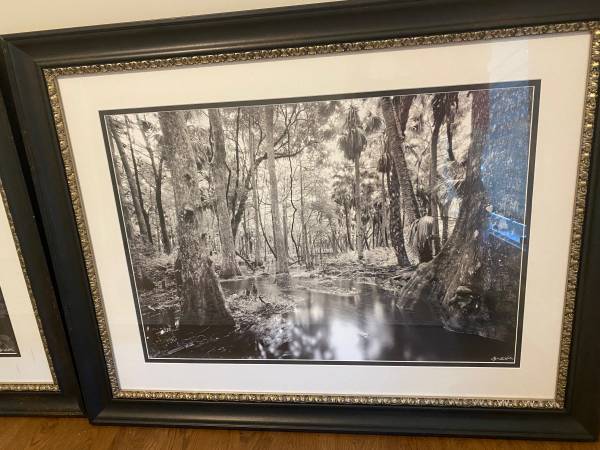 Black & white Florida wetlands photos. Professionally framed & mated behind glass with silver trim. $150 each or $250 for the pair Excellent & clean condition