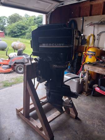 I have an 80s model 70hp mercury outboard for sale. I don't know allot about the motor, I bought it off an elderly fellow who took it off an older aluminum boat. He went with a smaller motor, this one had to much power for him. It's on a motor stand that will go with the motor. Stainless steel prop, and throttle box and cables. The motor has power trim. I was going to put it on a fiberglass boat but went a different way with it. 500.00 obo or am open to trades so let me know what you have. Please text if possible, too many spam calls. No codes, no bank checks. Thank you