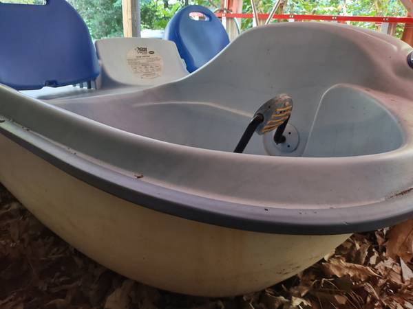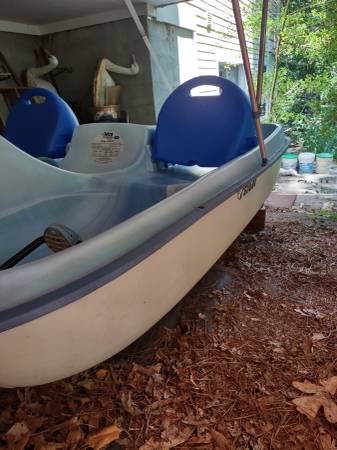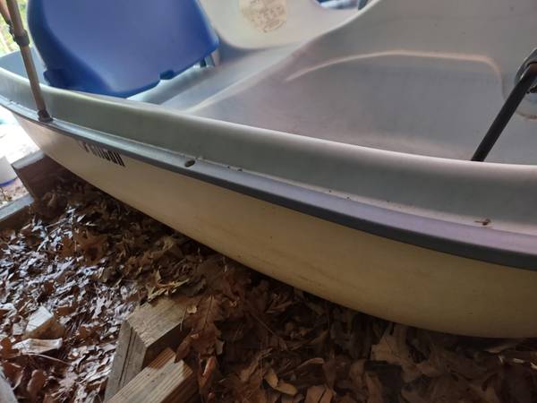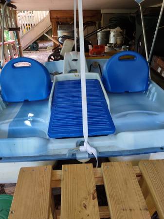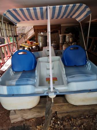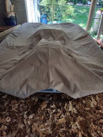 Model H27 Length 91" Beam 62" Seats 4 Canopy Has Mooring Cover for Storage Excellent Condition Blue & White Fiberglass