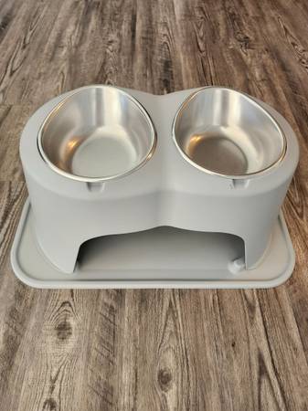 Pet Feeding System by Weather Tech - Elevated Dog Bowl - 12 inch High Light Grey Made in the USA! Includes: 2 - 64 oz (8 Cups) Bowls & 1 - Stand & Mat (18.25" Deep X 28.5" Wide x 12" Tall)...