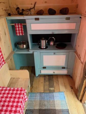 Charming Country Cabin Playhouse incorporated with some upcycled materials for a rustic look. One-Of-A-kind!