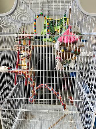 This bird cage is like new and will come with all accessories in the picture. Also has a stand and a bird backpack carrier. Paid well over 300 for everything. Asking 150.00