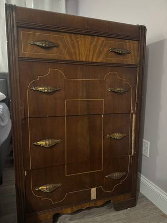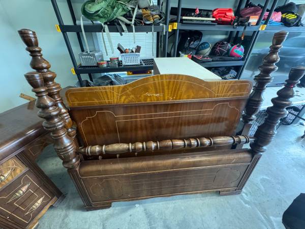 Full Bed with slats and rails Chest of drawers Vanity with Mirror I upgraded my bedroom furniture. I just need it cleared out of my garage!