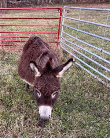 This sweet little donkey is friendly and gentle as can be, She will follow your every step