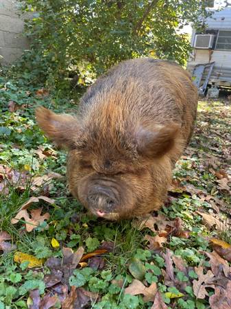 This is Valerie, she’s a one year old kunekune mini pig. SHE IS A PET! She’s incredibly friendly and loves hugs and pets. She’s acclimated to dogs and cats. I’m experiencing family related issues and don’t have the means to care for her anymore. I would love for her to go to a home with other pigs. Message me for more information and have a blessed day!