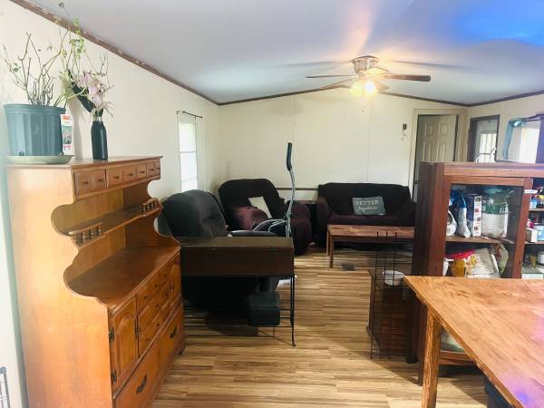 This is a single wide mobile home 14 x 56 2brd 1 ba. aprox 1 acre of beautiful land. It gives you an affordable place to call home in nature. sold as is, needs some continued TLC. We have been working on the house, and have built a nice screen enclosed patio. Nice to sleep out there in the summer with no bugs. Very safe area, and good schools, the bus runs for the kids. Also a deck in the back. There is a nice shop with a bench, and a metal shed. There are no zoning restrictions at this time. Come take a look and see what you can dream up.