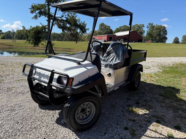 This is a club car carryall ! These 272 carts are a real work horse ! It has a new exchange Fe350 gas motor, new seats , new rear off-road tires, club car light package with turn signals, new starter /generator with new charging system , It also has a locking Trans/Axel and with 23x10.50 -12 off tires it will almost go anywhere,and has front and rear HD trailer hitches