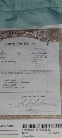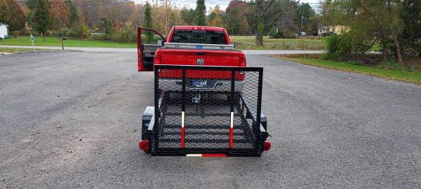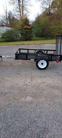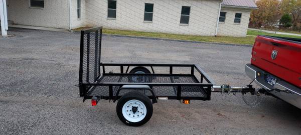 4x6 utility trailer with gate like new has new paint like new tires and wheels all lights work solid mesh bottom uses 2 inch ball has certificate of origin