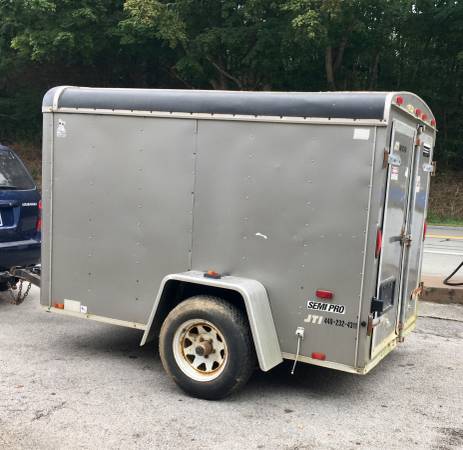 5x8 Enclosed trailer. Pulls great, no leaks, good tires, lights work and have new wiring. 2 inch ball. No title. Comes with bill of sale with purchase which is all you need to register it in...