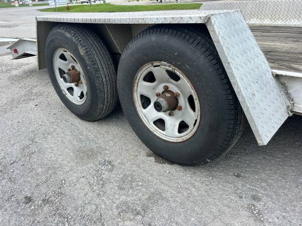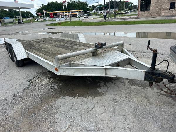 Aluminum Car Hauler 10K Lbs. 5K Tandem Axels Built In Tool Box Winch Breaks All Lights Work 7 Pin connector 4 New 225/75D15 Tires Slide In Ramps Good Car Hauler Price Neg.
